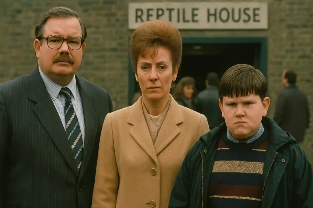 • Los Dursley “como salidos de 1991”: Otras fotos dejan ver a Vernon y Petunia con cabello, lentes y atuendos marcadamente noventeros; incluso se han rodado escenas en el London Zoo, guiño al episodio de la serpiente. Este énfasis en la época no es gratuito: la serie ancorará la historia en su tiempo original, con mobiliario, vehículos y cartelería period-correct.