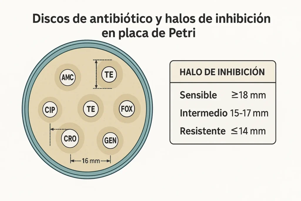 - Diagnóstico primero: cultivos, antibiogramas (método de difusión en disco / Kirby-Bauer) y pruebas rápidas para guiar tratamientos.